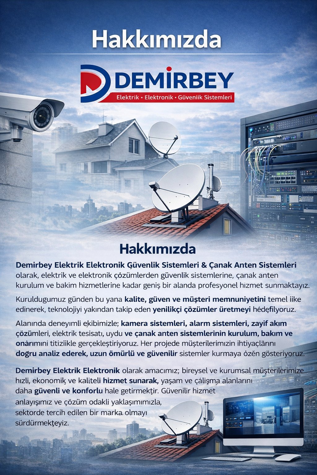 Firmamız, konut, iş yeri ve endüstriyel alanlarda yürüttüğü proje bazlı elektrik ve güvenlik sistemi uygulamalarıyla müşteri memnuniyetini ön planda tutmaktadır. Keşif, projelendirme, montaj ve teknik destek süreçlerinin tamamı uzman ekiplerimiz tarafından titizlikle yürütülmektedir.